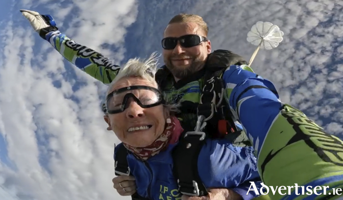 Ms Doolan’s jump took place from 4,000m over the Irish Parachute Club in Clonbullogue Airfield, Co Offaly when she was strapped to experienced skydiver Lukasz Kucharski.