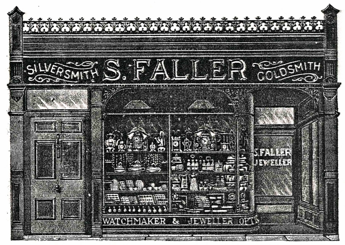 "The new jewellery establishment of Mr S. Faller was opened for the first time yesterday evening, and from its magnificence and brilliance created no small amount of surprise amongst our citizens; crowds of whom assembled in front of the window struck with admiration at the richness and variety of the articles displayed. The window alone, apart from the valuables with which it is furnished, has, we understand, cost Mr Faller over £300.