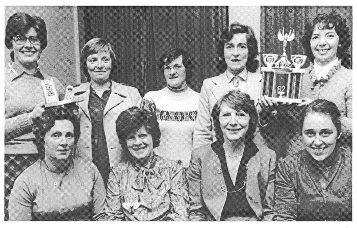 Our final group is of the Renmore Guild players who were the overall winners of the ICA Drama Competition with their production of Funeral Dance in October 1982. They are, seated: Mrs Margaret Molloy, President, Renmore ICA; Mrs Ettie Godsman; Mrs Sabina Higgins and Mrs Frances Watts. Standing are: Dympna Summerville; Rosemary Kent; Kitty Wheatley; Maureen Keaveney; and Nora Darcy.