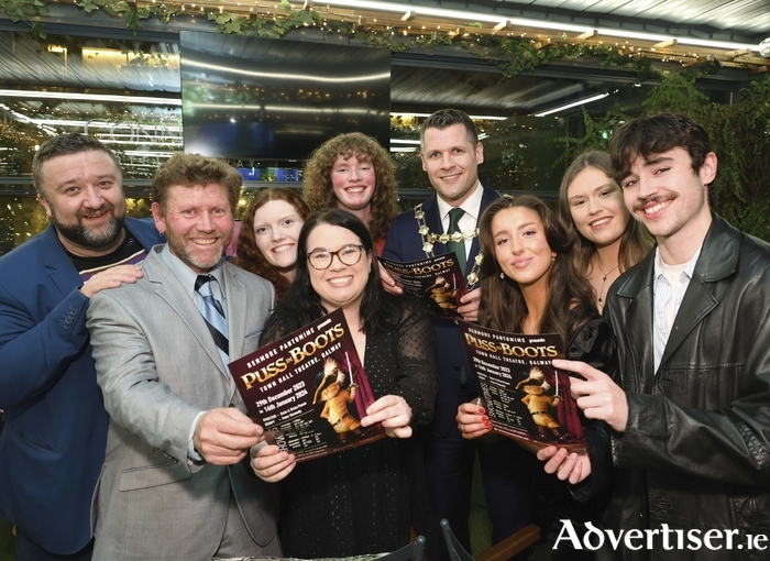 Mayor of Galway Cllr Eddie Hoare joined the principals of Renmore Panto, Darren Shine, Elizabeth Flaherty, Luke Dennigan, Aisling Carroll, David Booth, Hannah McCreanor, Fiona Keville and Michael Healy at launch of the Renmore Pantomime's production of Puss in Boots in the Connacht hotel on Thursday night. The annual panto will run in the Town Hall Theatre from December 29th until January 14th. (Photo: Mike Shaughnessy )