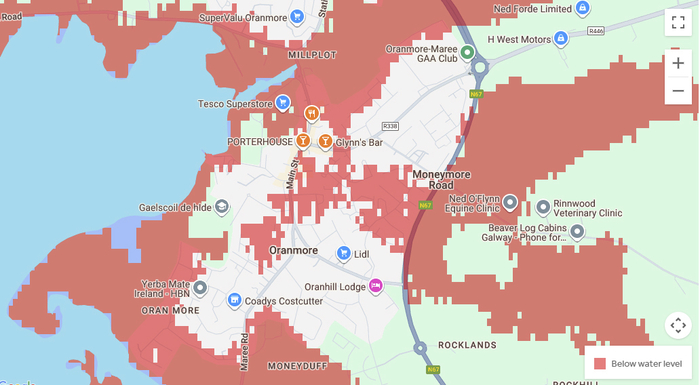 In November 2023, Storm Debi made landfall in Galway during a high tide of 4.9m - well below the 6m local range peak - flooding parts of Salthill, Oranmore and the city centre, and causing millions of euro of damage to homes and businesses, with storm surge waves high enough to lift boats out of the Claddagh Basin, and deposit them on quaysides.