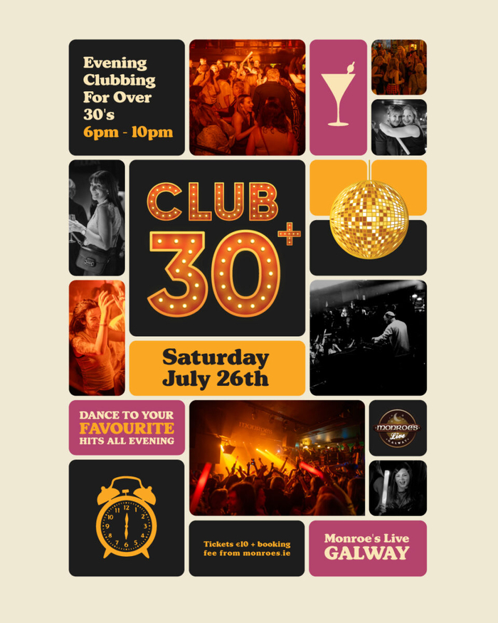 Galway’s very own Club 30 returns to Monroe’s Live on Saturday, July 26, from 6pm to 10pm, for an evening of non-stop dancing and throwback anthems from the Eighties, Nineties and Noughties.
