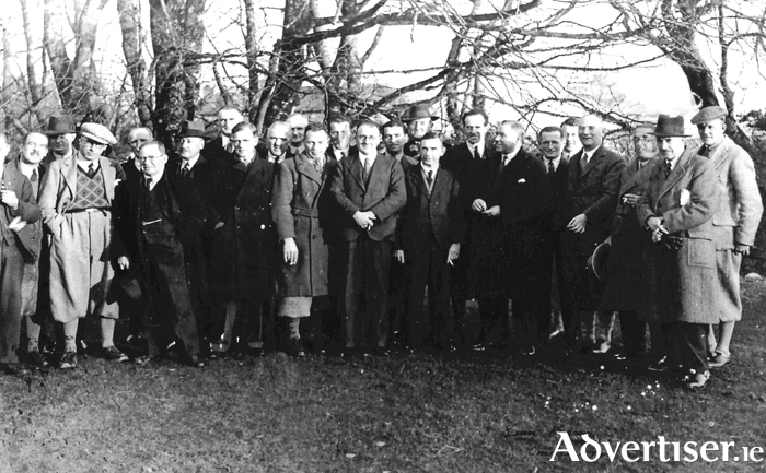 Our first photograph shows a group of golfers taken outside the clubhouse in 1935. They are, at the back, from the left: JF Costelloe, J Tierney, Henry St John Blake, J O’Sullivan, F Lenihan, JP Moran, D Quinlan, WR Webster, PM Kavanagh, JP Casey, HP Whelan, ET Ellwood, MF Conroy, M Whelan, Dr DV Morris. In front are Dr T Walsh, Dr CC O’Malley, Dr G O’Beirne, MB Tighe, Commandant L Walsh, RB Kineen, G Lougheed, JJ Ward, TJW Kenny and EF Fitzpatrick`.
