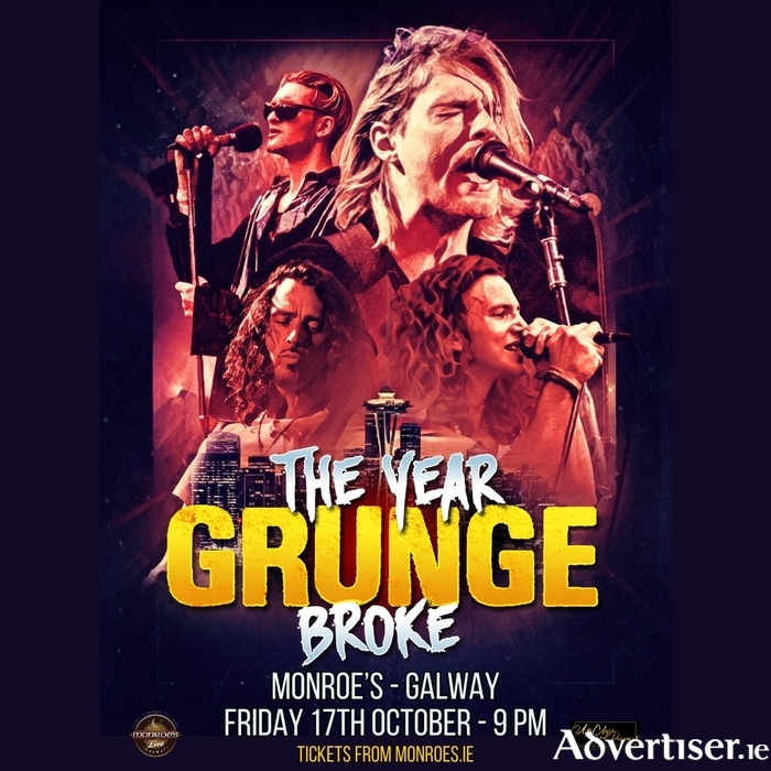Fans of ’90s rock can look forward to a night of nostalgia when The Year Grunge Broke takes to the stage at Monroe’s Live, Galway, on Friday, October 17. Doors open at 9pm.