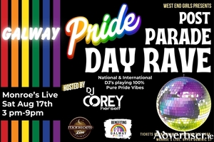 Monroe’s Live will host a vibrant day rave following the Galway Pride Parade on Saturday, August 17, from 3pm to 9pm.