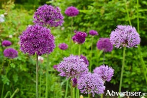 Every May I always wish I had planted alliums several months ago. These round heads of purple and mauve are super for plugging the ‘May Gap’ – those few weeks in May when the garden can seem very green but lacking in colour, because the bright pops of colour from spring bulbs are over, and the summer flowering perennials haven’t really got into their stride yet. Each plant produces lots of tiny flowers exploding from the centre to produce a perfect sphere and this is why they are often likened to fireworks. Taller ones will soar over the heads of smaller plants in the border, further adding to this effect.