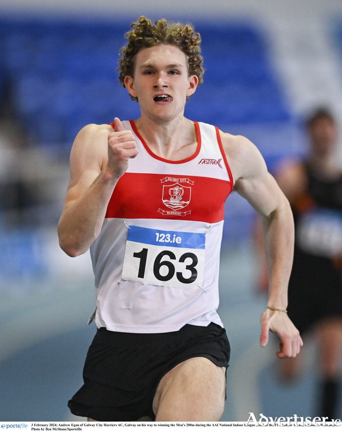 Galway City Harriers’ Andrew Egan ran up a superb tally at the AAI National Indoor League finals in Athlone last weekend.