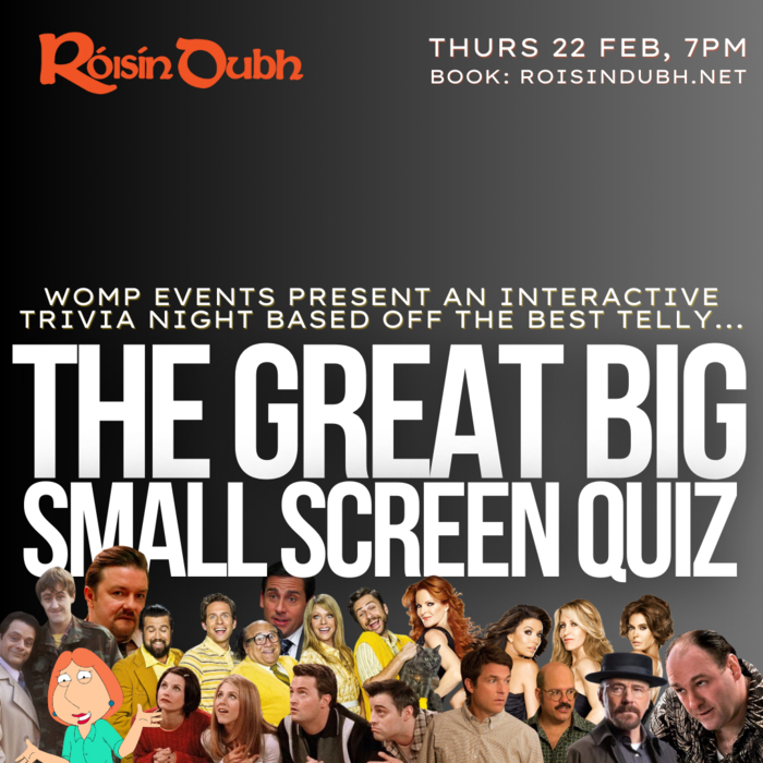 This will be a multimedia mish-mash of all Womp Events’ best TV quizzes through the years, including The US Office, It’s Always Sunny In Philadelphia, The Simpsons, Friends, Breaking Bad, Game of Thrones, and dozens of other TV show references.