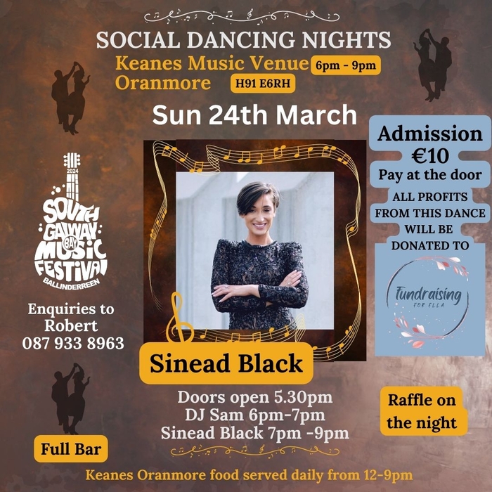 Doors open in Keanes Bar, Oranmore at 5:30 pm. Admission is €10 at the door.