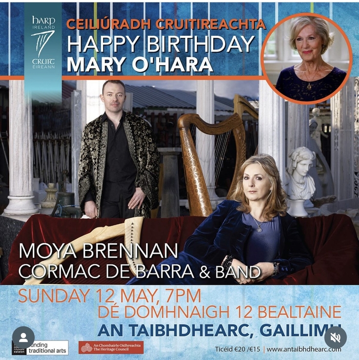 Join Cruit Éireann|Harp Ireland for Happy Birthday, Mary O’Hara in Taidhbhearc na Gaillimhe on Sunday, May 12, at 7pm. Celebrate renowned harpist Mary O’Hara’s birthday with the release of Voices and Harps IV, Moya Brennan and Cormac de Barra’s latest album.