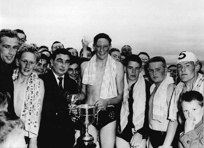 One of the main swimming events of the year, since it was first raced in 1933, is the Prom Swim. It used to be run at the end of the summer and heralded the end of the swimming season. There were usually a number of these – men’s races, women’s races, club races, open races, but whichever one it was, it was tough. One had to compete against waves, swells, currents, jellyfish, the cold and exhaustion. It was a real endurance test initially taking place from Blackrock to Palmer’s Rock, then from Blackrock to Seapoint and occasionally from the reef to Palmer’s Rock.
