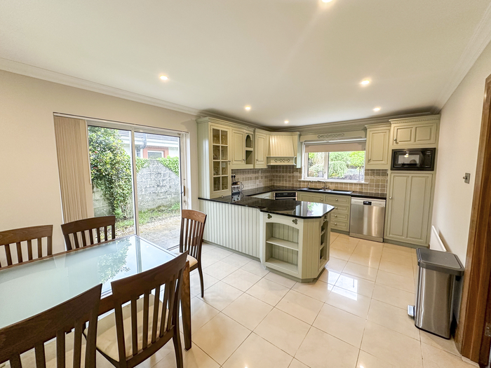The heart of the home is the kitchen / dining room, which is beautifully appointed with porcelain floor, wall and floor units in a contemporary colour, and the room connects to the landscaped rear garden through a sliding patio door. A large utility room off the kitchen accommodates the laundry, hot press and gas boiler for central heating.