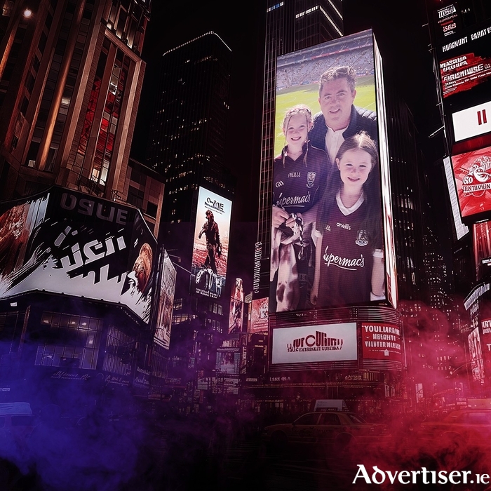 Galway supporters can upload a photograph of themselves wearing their Galway jersey onto the Supermac’s website and it will appear on a display in the centre of Times Square throughout the match weekend of April 5 to 6, 2025.