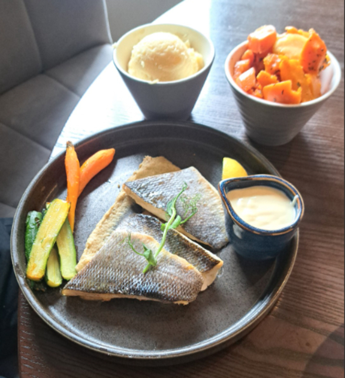 The Catch of the Day, a baked fillet of seabass during this visit, is a prime example of the Bistro’s ability to handle classic dishes with finesse. The fish is perfectly cooked, with crisp, golden skin giving way to delicate, flaky flesh beneath. The aubergine purée provides a smoky, velvety base, while the roast baby courgette and glazed carrots are tender and naturally sweet, adding both flavour and colour. The creamy white wine sauce ties everything together, rich without being overpowering, and enhances the subtlety of the seabass rather than masking it.