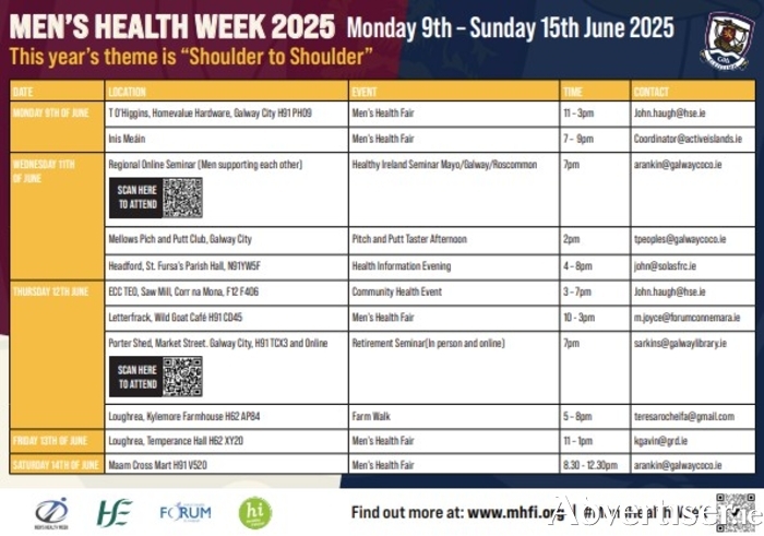 This year’s theme, “Shoulder-to-Shoulder – Connecting for Health,” highlights the importance of community and connection in supporting men’s wellbeing. Across Galway city and county, a diverse programme of events will offer men the chance to engage, learn, and take proactive steps toward better health.