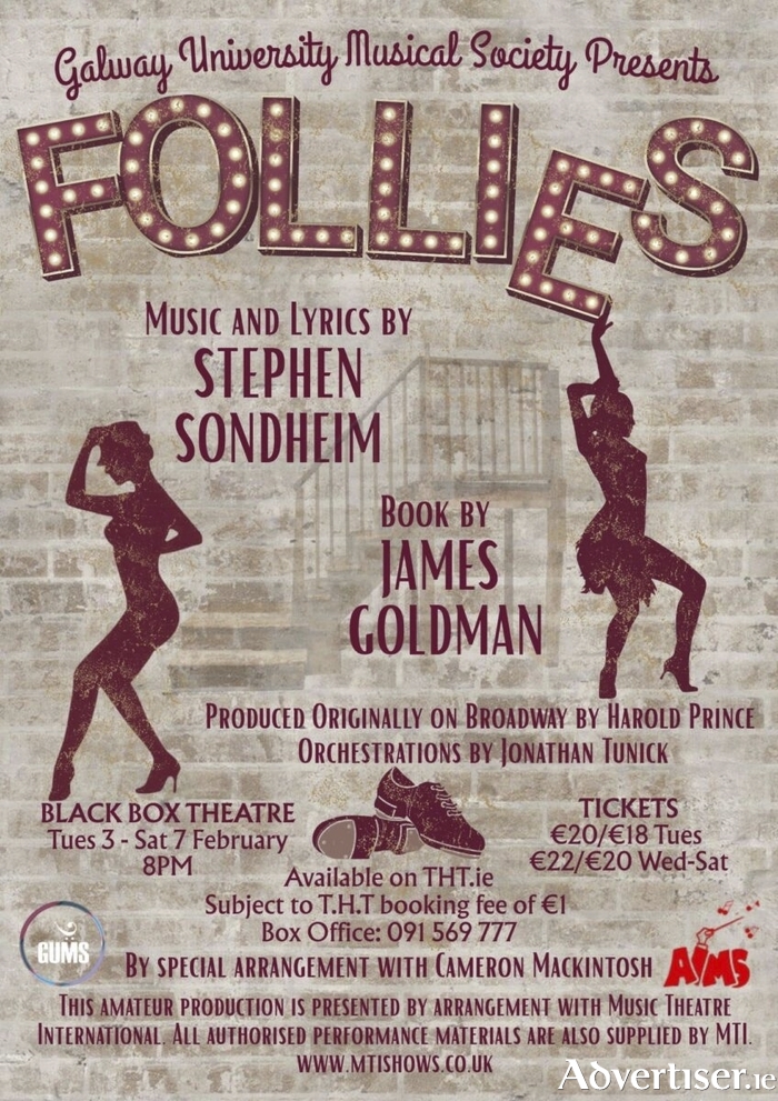 Galway University Musical Society (GUMS ) presents Follies by Stephen Sondheim, running from February 3-7 in the Black Box Theatre.
