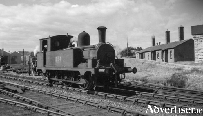 Our first photograph shows locomotive No 554, named Fly, which was built in 1891 for shunting duties. In the background you can see three old cottages with extra-high chimneys next to the extant water tower. These cottages were demolished to make way for a dormitory built for visiting train crews. The dormitory, in turn, was demolished in 2000. Our second image was taken at 18.20 on September 15, 1955 as engine No 96 was departing from Tuam. Four steam engines are visible. All of the above is taken from a new small book entitled The Galway Train, self-published by the indefatigable Michael J Hurley. Michael is already well known for his books on buses and trams in Galway as well as many other titles. He is almost out of this train book now so if you would like to get a copy, email him at [email protected].