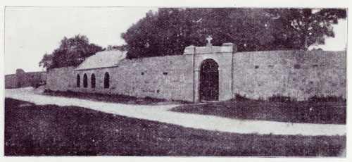 In August 1811 the extensive burial ground on Fort Hill was enclosed by Mr Robert Hedges Eyre as a mark of respect and esteem for the inhabitants of Galway. Our photograph today was taken c1905 and shows that wall, the entrance gate, and the mortuary chapel. The cemetery was often neglected, but in recent years a team of parishioners have done a wonderful job in cleaning it up. It is said that you cannot claim to be a true Galwegian unless you have some ancestors buried in Fort Hill.