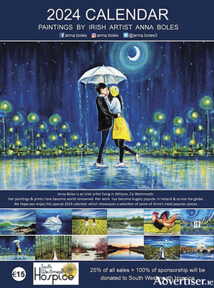 The recently launched South Westmeath Hospice fundraising 2024 calendar by prominent landscape artist, Anna Boles, is an essential gift this season with the new year firmly in mind.
