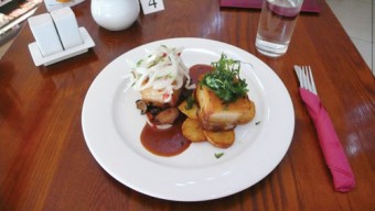 Over the years Loughrea has not had many new cafés/restaurants, and now in the space of less than six months, I visited a third new venture. The Corry family has had a butcher’s business in Loughrea for many years and just two years ago they made the brave move to a new architect-designed building beside the old railway station. The café is situated on an open mezzanine upstairs and is now producing some really good food. Like several places I talked about recently, it is on its third incarnation, the new head chef and proprietor Nigel along with his wife Magaly at front of house, has I believe got the right formula and range of products.