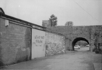 The buildings we see on the left of our photograph were once two-storey houses which featured on the 1651 map of Galway. Some years ago, in this column, we showed a painting of those houses and also the ones across the street which gave the impression of a continental atmosphere to this area. According to Griffith’s Valuation, which was published c1855, the houses on the left were occupied at that time by Dennis Quinn, Patrick Commons, and Michael Derrane, all of whom kept lodgers.