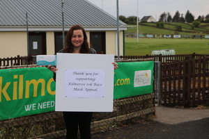 The first batch of face masks were recently presented to Angelina Nugent of the Mayo Roscommon Hospice Foundation (MRHF) at the Kilmovee Shamrocks GAA ground, by the organisers of the Kilmovee 10k.