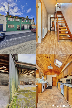 Well located mid-terrace Moate town centre property with commercial premises attached
