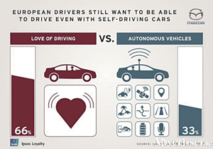 Two out of three European drivers want to be able to drive even if self-driving cars become commonplace, according to a major new piece of research launched by Mazda.