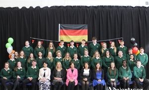 The German flag was raised on the flagpoles at Davitt College Castlebar recently to mark a visit to the school of the German Ambassador to Ireland, Mrs Deike Potzel.