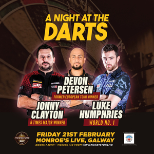 Three of the world’s top darts professionals, including world number one, Luke Humphries, will take part in a thrilling event, A Night at the Darts, at Monroe’s Live on Friday, February 21, at 7:30pm.